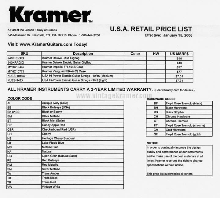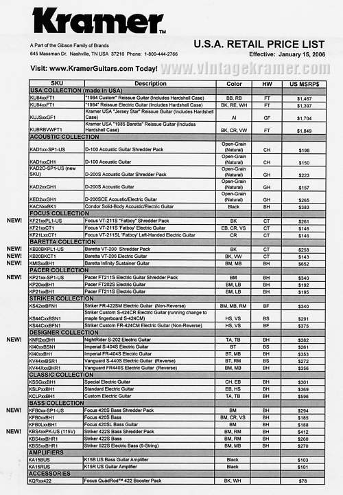 Kramer Guitars - 2006 Literature