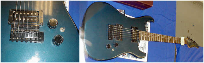 Later in 84-85, the trems were changed to single locking non-tuner Floyds. The Floyds had the same type saddles with no joint/lever action and strings were tightened from allen screws in the rear such as the original Floyd Rose.
