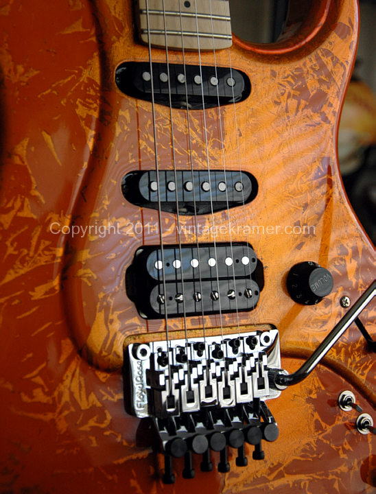 As mentioned above, the Illusionists feature the illusion of a pickguard. This is obviously very original and very definitive to the Gary Kramer line. No other manufacturer has attempted something like this. What is really neat about the faux pickguard is the depth it creates in the guitar finish. Most super Strat bodies generally have a flat appearance and lack that "depth character" that Les Paul's and other archtop guitars show off in appearance. When the Illusionist first appeared several years ago, that was the first thing I noticed, how the guitars just "popped" when you viewed them in person or in photos.