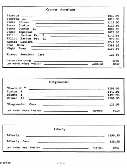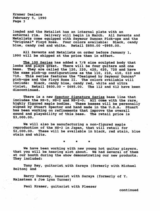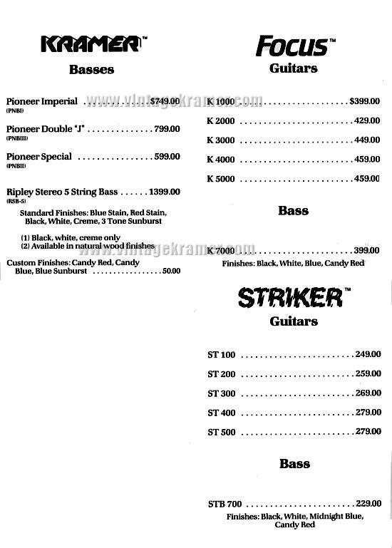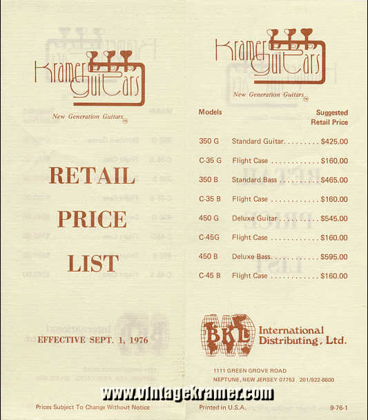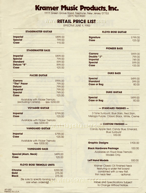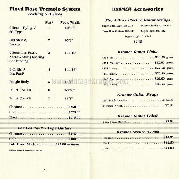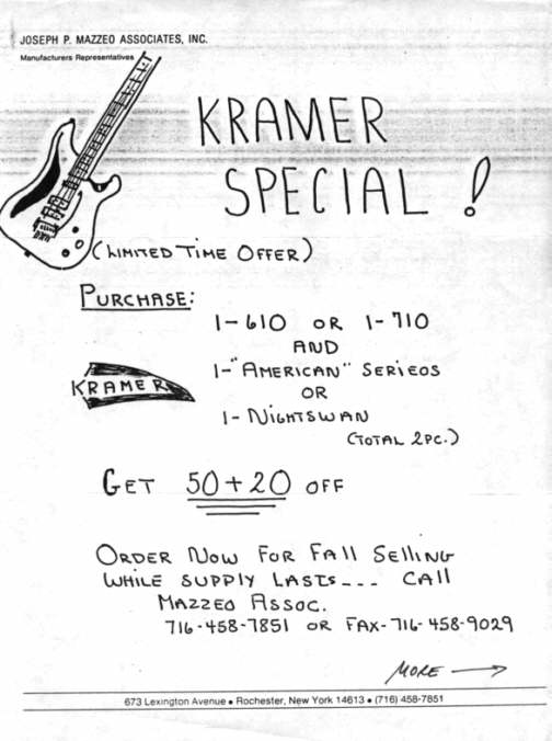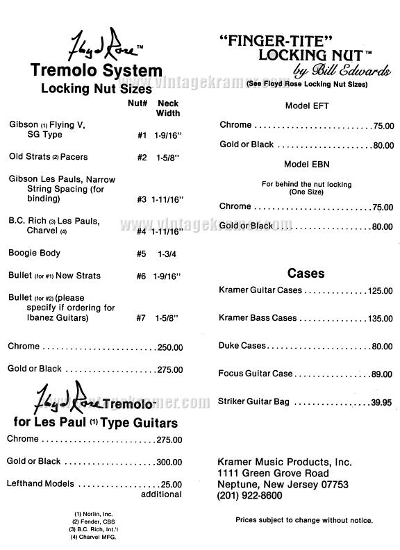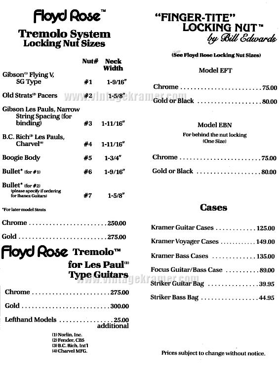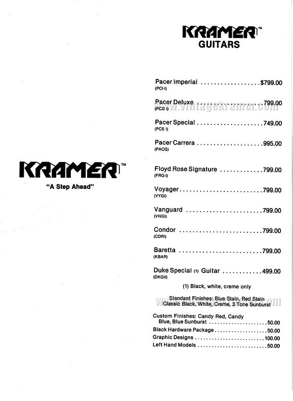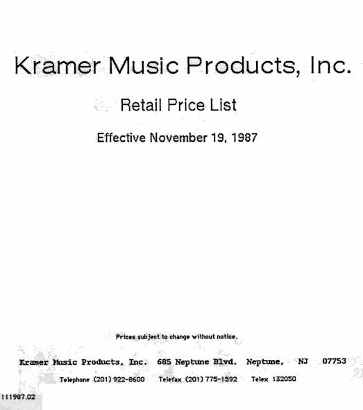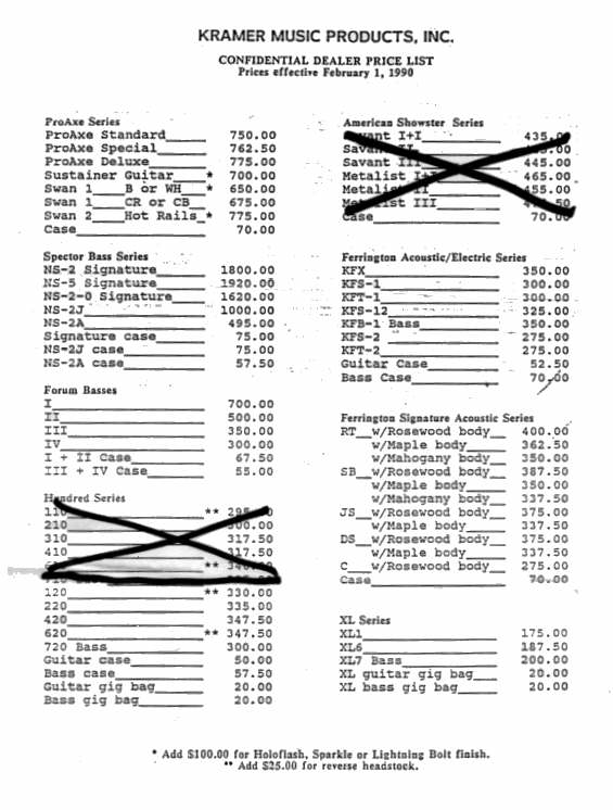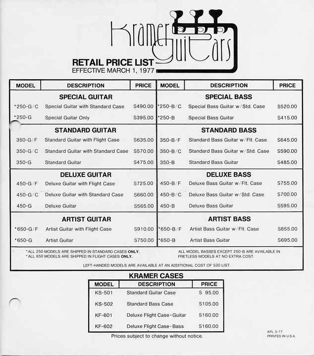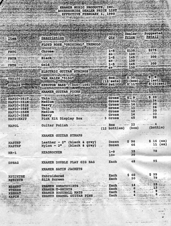 are some Kramer MSRP and Dealer Cost price sheets from the old days...