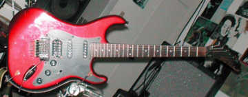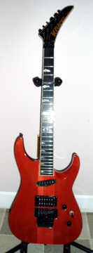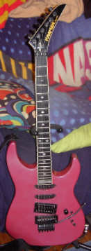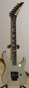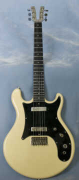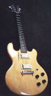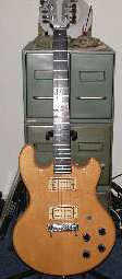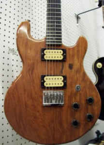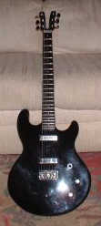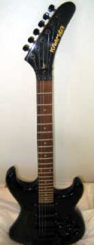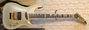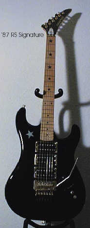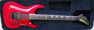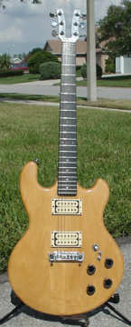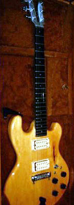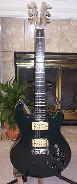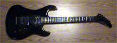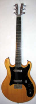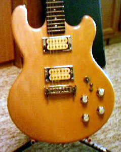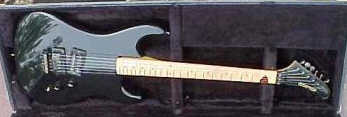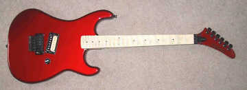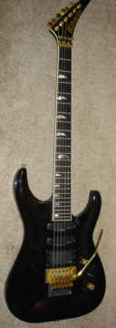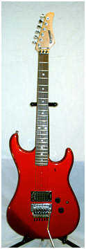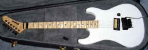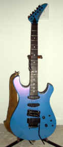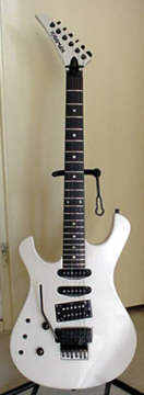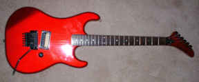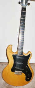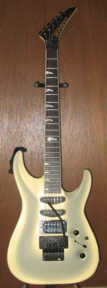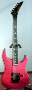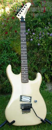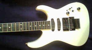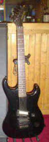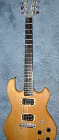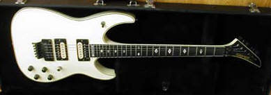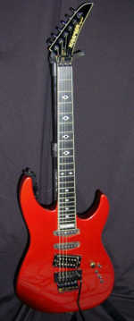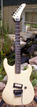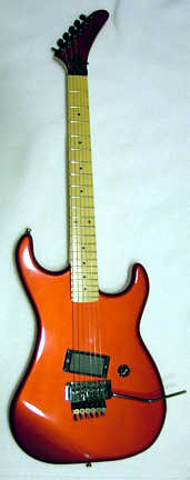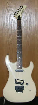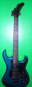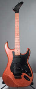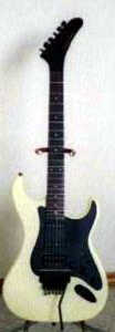 top Stagey, diamond inlays, large soloist body shape, block logo |